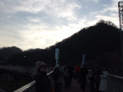 夜明け前 初日、朝5時半起床で、6時前には家を出た。 もちろんまわりはまだ真っ暗である。 こんなに早起きしたのは初めてだが、 バスや電車には予想外に人が乗っていて驚き。 |
