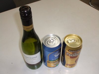 夜の部 センター入試には夜の部はないけど、 2日目も朝5時半起きでは体がもたないので、 初日は研究室に泊まった(これはこれで体がもたないが)。 んで、ビールは重いので、家にあったハーフボトルをもっていったのだが、 松本くんがビールをパックで差し入れてくれて、お酒は賑やかになった。 とまれ、初日はリスニングまで含めて、トラブルもなく終わり、 疲れもあって、ほとんど飲みつぶれてしまった感だ。 |