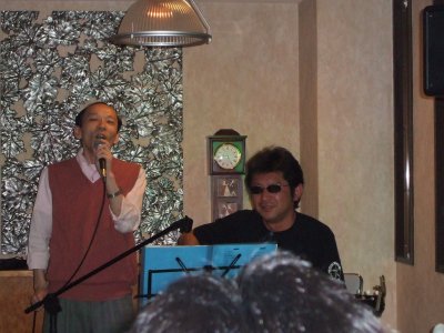 フォーク会場 3Fはフォークの生演奏とテラスの屋台。 2回目の演奏時間に、何曲かあった後、フロアへ向けて、 “「神田川」を知っている人?”と問いかけがあったので、 ハーイと何人かが手を挙げたら、 “じゃぁ、一番、奥の人、一緒に歌ってください!”。 え、何それ、聞いてないよぉ。 知らない人々の前で歌ったの、はじめてである。 |