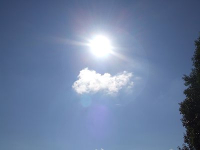 太陽と雲。 太陽写るかなと思ったら、写すときは眩しくてわからなかったけど、 結構、デジカメでも写るもんである。 |