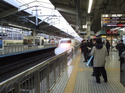 この風景は数千年来変わっていないはずで、京の古さを実感する。 京都駅に着くまでは日が昇らなかったのだが、 いつものように窓際席を取り 新幹線に乗って走り出した途端に日が昇ったのは感激もんだった。 というか、新幹線の運行に伴って地平線が変化するので、 しばらくの間、日が昇ったり沈んだりするわ、 見える方向も前方から右手に変化するわ(ちょうど右側窓際席)、 これは面白かった。文明社会ではじめて体験できることだろう。 目がチカチカしてきたので日の出を見るのはこれぐらいにして、 新幹線書斎で頼まれた記事を書いてしまおう。 |