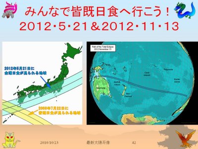 この会合の100回以上の中で宇宙の話ははじめてだったようなので、 いろいろテンコモリして、昨年の日食の話もして、 さらに、再来年の日食(日本とオーストラリア)を勧めた。 こういうメンバーだと、さすがにオーストラリアに行ったことがある人が 数人は居た。 皆既日食見て、宇宙に入れ込んでもらえるといいなぁ(笑)。 |