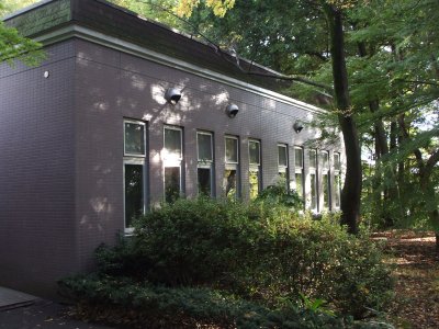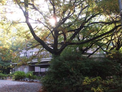 集中講義の会場はコスモス会館会議室とあった。 コスモス会館は食堂や宿泊施設のある建物だが、 会議室があるとは知らなかった。 初日は一番乗りだったので、会議室を探してウロウロしたが、 すぐ目の前にあった。 |