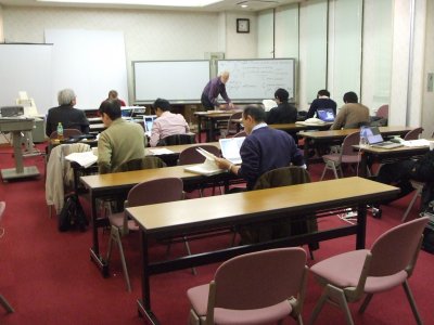 今日も一番乗り(笑)。 しかし、昨日もホテルに戻ってから予習をしたり呑みに行ったり、 また夜中に予習したり、最近は、こんなに勉強したことないが、 さすがに寝不足が続いて、ふらふらだ。 なんとも、予想以上にハードだが、期待以上に充実している。 しかし、今回の集中講義、受講者が10人ぐらいでは、 もったいなさすぎる内容だ。 ビデオ撮りをしているので、ビデオだけでも、広く公開されるといいなぁ。 とにかく講義内容が実践的で実用的だし、講義資料も豊富で、 あとあとまで役立ちそうだ。 また講義スタイルそのものも、インタラクティブでジョークが豊富で (笑えないのがツライけど)、とても勉強になった。 |