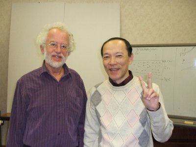午前の講義が終わったところで、 今日帰らないといけない旨、挨拶などした。 もちろん、当然(笑)、一緒に写真を撮ってもらった (photo by Y. Feroo Kato)。 |