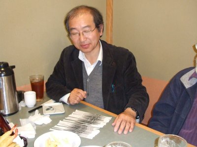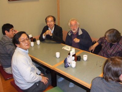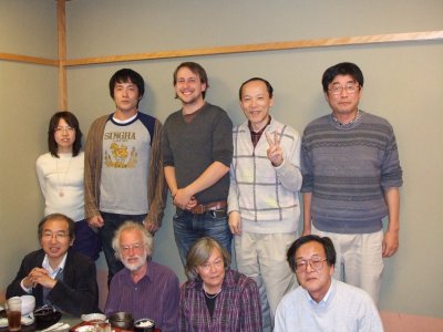 会食後に記念写真。 Ruttenさん夫妻は、翌朝6時の新幹線で東京へ向かい帰国とのことで、 早いお開きになった。 |