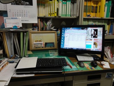 デスクトップ更新 ソフトのインスト−ルやデ−タの移動など、 更新作業で半日以上、潰れる;はぁ〜。 しかし、ノ−パソは土台の面積があるので、 デスクトップにした方が、かえって、机の上は広くなった。 でも、すぐに書類で埋まるんだろうなぁ;はぁ〜^2。 |