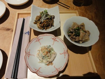 渋谷で呑むのは実は初めてで、駅ビル(渋谷マークシティ)4Fにある、 おばんざいの店に入ってみたが、 呑む相手はともかく、店的には、大当たりを引いた。 おばんざいは京都の家庭料理で、京都ではあちこちに店があるが、 それらと比べても遜色ないぐらいに、美味しいおばんざいだった。 ビールの後にワインも飲んでみたら、 白も赤(ちゃんと常温だった)も飲みやすく、お勧めである。 |