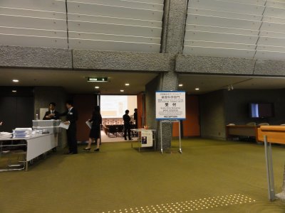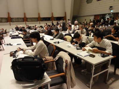 一般参加者へ配慮して、日本語での講演であった。 写真は休憩時間中の会場。 |