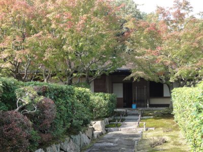 |  | 茶室 植え込みでまわりからはわかりにくいし、一昨日はぼくも気づかなかったのだが、 庭園の端の方には茶室が佇んでいる。 裏千家が寄贈したもので、宝松庵と呼ぶそうだ。 さすがに中まで覗く根性はなかった(笑)。 |