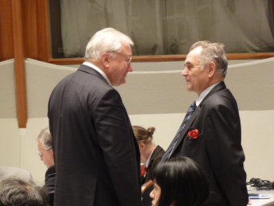 |  | ベストショット 懇親会も半ばを過ぎた頃、ちょうどシャクラとスニアエフが話していたので、 今回の最高ショットを撮らせてもらった。 2人が並んでいる写真はかなり(マニアックに)お宝もんだと思う(笑)。 |