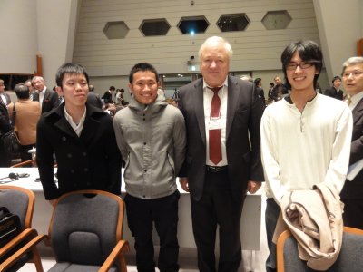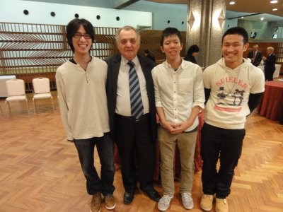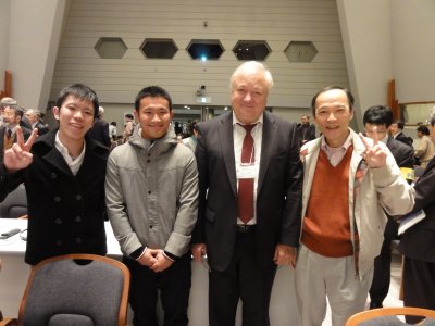 |  | 記念写真パート1 ワークショップは17時30分ごろに終了。 スニアエフのまわりにはしばらく人が群がっていたが、 人波が途切れたところを見計らって、お祝いの挨拶に。 また参加していた学生と記念写真もきっちり。 |
