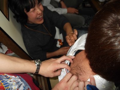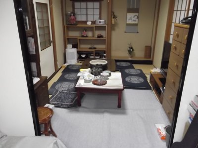 6畳 この6畳に今年は何人入るのか。 全員は絶対無理っぽい。 座布団はもちろん足らないので、 手前はカーペットを引いて誤魔化している(笑)。 |
