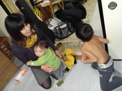 五百蔵到着 7時ごろ五百蔵一家が来訪。 いきなり上着を脱いでセミヌードになる長男。 |