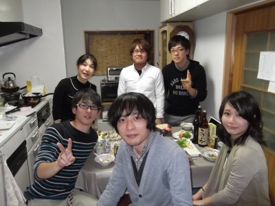 ほっこり 台所に追いやられた院生たち。 立ち飲みの予定だったけど、椅子は足りたみたいだし、 悪代官も魔女も鬼も居ない部屋で、 ゆっくり・ほっこり呑んでいたらしい。 しかも、食材や飲み物に近いし(笑)。 美人ゲストは柳の妹さん。 |