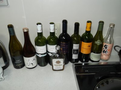 宴の後 翌朝に残った空瓶(の一部)。 |
