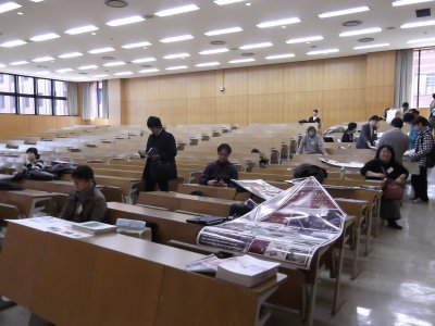 今回の学会の世話大学は京大だが、京大は施設使用料が高額なため、 学会本体は龍谷大学で行われる。 しかし、記者発表は京大の時計台ホールなので、 家から歩いて5分ちょい(京大の敷地までより敷地内のが長い)で、 前日に配付資料を持参するとともに、記者発表も見学してきた。 |