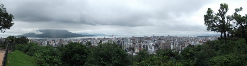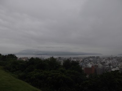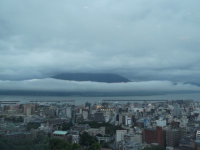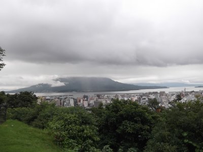 雨は止んだので、頂上までは見えないけど、 まぁまぁの桜島。 |