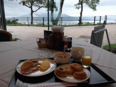 城山観光ホテルは、またモーニングがものすごく豪華絢爛で、 あまりたくさん食べられないのが残念だけど、 たしか和洋合わせて100種類ぐらいあって、 オムレツなんかはその場で作ってくれるし、パンも美味しいし、 今回も昼の軽食用にパンを2つテイクアウトしたぐらい。 このバイキング、単体だと2000円もするけど、 今回のビジネスプランは朝食込みだから、とってもお得だった。 |