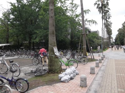 鹿児島大学も無闇にキャンパスが広い。 手前は火山灰袋。 |
