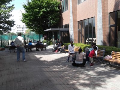 もともと4級は考えていなかったが、昨年、 かなりの人数の小学生が3級を受検して、 難しいので4級が欲しいとの声を受け、 今年、4級を実施することになった。 期待通りというか、まだ試験開始の小一時間前なのに、 家族連れがわんさか集まってきている。 |