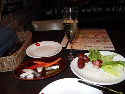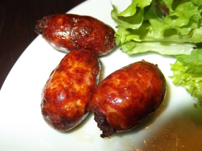 ワインはもちろん美味しかったが、 このミニソーセージが絶品。 もう(イタリアン!?のまずい料理で)お腹一杯だったけど、 ついつい食べてしまった。 |