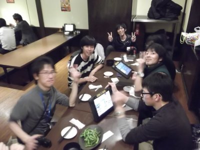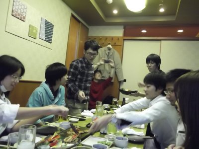 結局、OBの有本くんを入れて、12人、居たのかな? たぶん。 1次会は7時(!)ぐらいにお開きで、 有本くんと藤井くんが帰京し、残りの10人ほどで2次会へ。 |