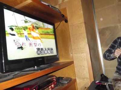 なんか、勝手にカラオケつけて、唄ってやんの。 1曲目のこれは唄えたが、もっと後でやった、 2曲目(ももクロ)は、途中で店にばれた(笑)。 |