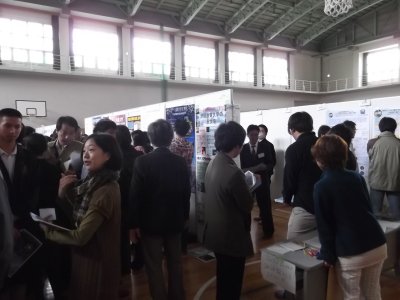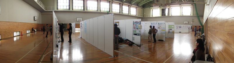 学会最終日、今回の学会でもっともヘビーな行事をした。 本番は11時開始、14時過ぎまで、の予定だが、 とりあえず、10時には会場に入る。 今回は埼玉大学でポスターボードを用意してくれて、 またポスター会場と一緒で、条件はよくなった。 受付開始の10時半には10数大学のセッティングが終わったが、 京都のときと同様に、高校生の参加者は一人も来ない。 京都のときには午前中に、JS以外の高校生が10数人ほど集まったが、 今回は1人2人程度だった。 アナウンス不足+地の利の悪さが影響したのだろう。 もっとも、わざわざ愛知から来訪した母子もいて (インターネットで知ったらしい)、 非常に役立ったと喜んで帰ってもらうことができたので、 よしとしよう。 昼休みになってからは、ジュニアセッションの参加者もポスター会場に来て、 客引きはしやすくなった。 (もっとも3人に2人ぐらいは、胡散臭げな目で見られて・引かれて、 結構ですと断られるので、少し凹む) ポスター会場と一緒なので、受付やアンケートはほとんど取れなかったが、 おおざっぱな目算で、30人ぐらいが寄ってくれただろうか。 中には熱心に聞いていくれている高校生もいたので、 JSの参加者にとっては十分に役立ったように思える。 やはり今後の最大の問題は、JS以外の高校生参加者を いかに集めるかだろう。 |
