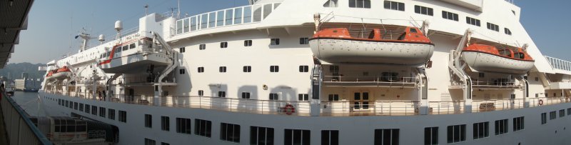 | 2009年の皆既日食クルーズ以来、金環日食などでも乗った、 豪華客船ふじ丸が、とうとう6月に引退する。 一週間とか数日のラストクルーズのプランはいろいろあったが、 時間も取れないし、何よりお値段も高い。 関係者の方から、昼食のみのラストデークルーズを教えてもらい、 最後の記念に乗船することにした。 ほんとは黒田武彦さんも一緒に乗ってもらう予定だったが、 体調の関係などで実現しなかったのは残念である。 | |
