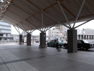 え、なんか、こんな広かったっけ。大改装したみたい。 土日でバスが少ないのに、もう間に合わなさそー。 仕方ない、タクるか。 もっとも、雨もパラパラしてきたし、 タクシーが正解だったかも。 |