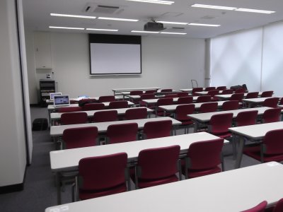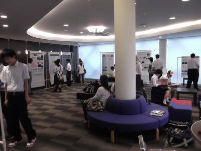 やっぱ一番乗り。 この会場で各大学の紹介をする予定だったが、 参加人数が少なかったので、 結局、ポスター会場で紹介も一緒に。 |
