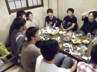 お楽しみの夜セッション。 この会、以前からかなわんのは、 夜の7時半まで平気でプログラムを組んだりするんよね。 ふつーの研究会でも学会でも、もちろん国際会議でも、夜の時間が大事だから、 そんなスケジューリングはしないのに。ちょっとおかしー。 澤さん&愛教大グループなんて、6時にはさっさと呑みに行った。 ぼくも、はやく呑み行こーって学生をせっついて、ようやく7時過ぎにお店へ。 |