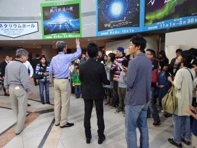 第13回目である。今年も2日間にわたって大阪市立科学館で開催された。 今年も初日土曜日は連休初日で天気がよくて参加者は多くなかったが、 天気が悪かった日曜日は人の入りがよくて、 トータルで3000人弱ぐらいだった。 今年の天文関係は、展示ブースが2つに、工作室でのセミナーが一つだったが、 今年もほぼノータッチ。でも、いろいろ工夫したテーマを出していた。 |