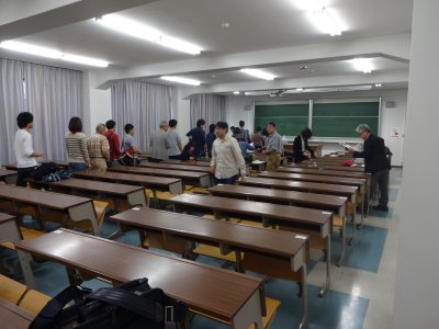 大阪会場にはできるだけ顔を出すようにしているが、 今回は、試験後の答え合わせ会で講演(解説)を頼まれたので、 午後から会場に向かった。 午後3時からが、2級と1級の試験だが、 開始の1時間ぐらい前なのに、すでに受検者が結構集まっている。 |