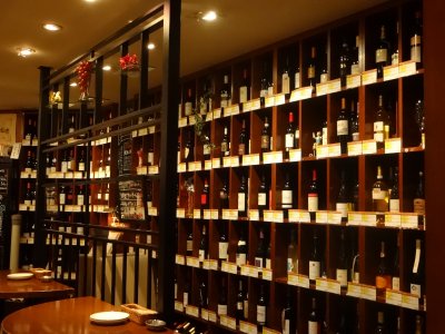 そういえば、この棚は撮ったことがないかも。 泡・白・赤それぞれで、グラスワインが10種類ぐらいあるが、 今回も美味しいワイン揃いで幸せである。 野郎ばっかだし、ただひたすら馬鹿話をして、 美味しいワインを飲んでいたが、予想通り、 しこたま酔っぱらってしまった。 幸い1軒だけだったし、寝不足でもなかったので、 大阪へ向かって折り返したりはせずにちゃんと帰れたが、 翌日が二日酔いで、一日、あまり仕事にならんかった;; |