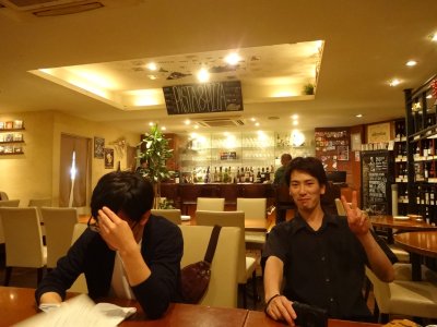 小倉くんが実習用の観測データを取りに来たので、 こちらも時間があり、月曜日の卒論ゼミ後に、 久しぶりに、なんばのBouchonへ呑みに行った。 うろうろしていた院生と合わせて5人ほどで。 さすがに月曜日の夜なので、わりとすきすきである。 |