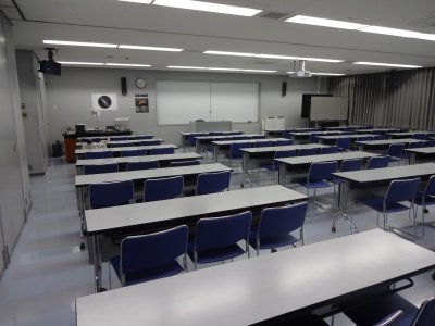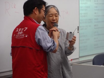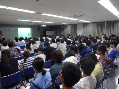 開始直前にはほぼ満席状態になった。 椅子が足らないので、大学関係者は後ろで立っていたりする。 |