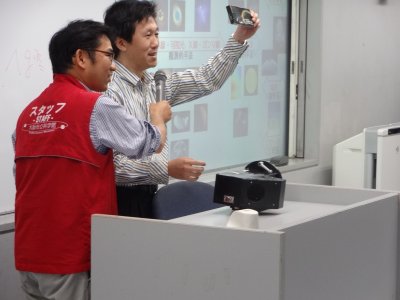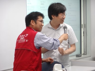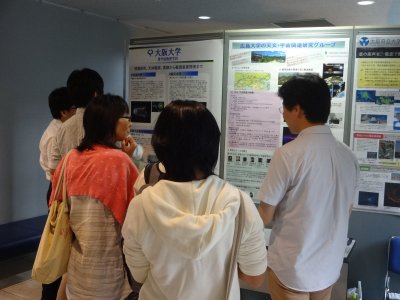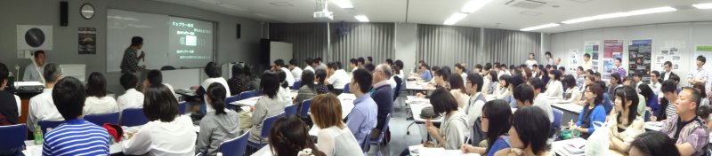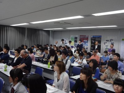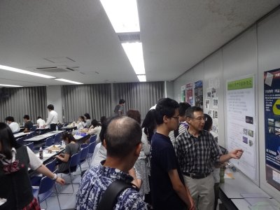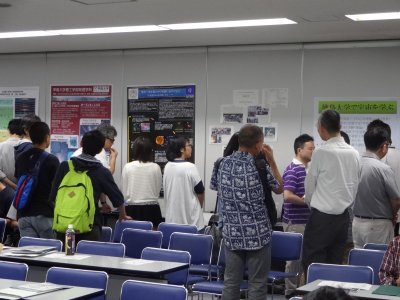 午後のポスターセッションも、午前と変わらぬ賑わい。 今年はぼくも随分と質問を受けて、とくに教育大学が一つだったこともあり、 社会教育施設への就職とか、教育的な卒論のこととか、あれこれ問われた。 |