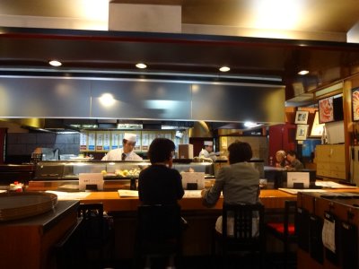 これは店に入った5時半ぐらいのものだが、 すでにカウンターにもお客さんが居る。 しばらくしたら、7,8割の入りになった。 この日は日曜日だったけど、週日でもここは混んでいる。 |