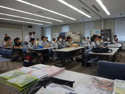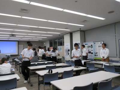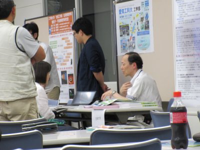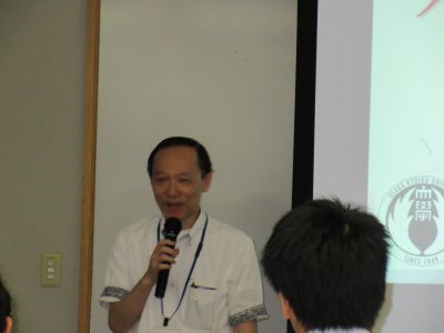 比較的早い新幹線には乗ったが、それでも鹿児島中央駅に着いたのは1時前で、 今回の会場の鹿児島県民交流センターまでタクシーを飛ばした。 大阪教育大学の発表時間まで20分の余裕があるはずだったけど、 会場に着いたら一つ前の岡山理科大の発表がはじまっていた;れれ。 広島大学のキャンセルで時間が繰り上がったらしい。 会場内は高校生が20名かそこらの感じだが、 みな熱心に話を聞いている。 |