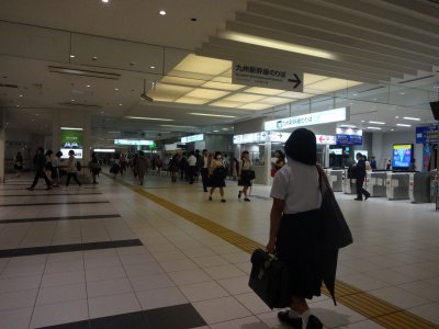 翌日の朝は、土砂降りの中を、鹿児島中央駅に来たが、 7時過ぎなのに、人がわんさか居てる。 そっか、今日は月曜日なんだ。 鹿児島にいると、いつもながら、時間を忘れてしまう。 日常タイムに戻らないといけない。。。 |