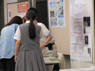 ちょうど中央あたりで、生徒がわらわら集まっているところが、 大阪教育大学のブース。 |