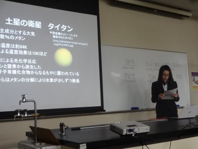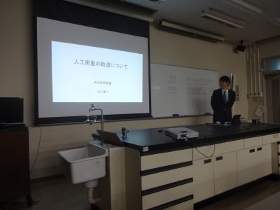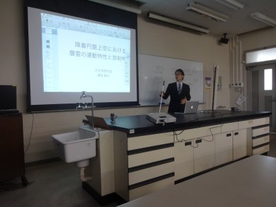辰巳くん 実践を踏まえたこん天儀の教材的価値の検証 午後からは卒論発表: 今年は18人の大勢 |