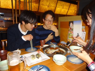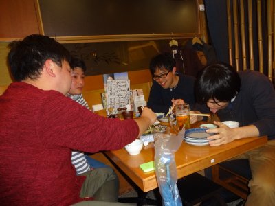 2日目は、自分自身と学生の発表。 で、3時過ぎには通常セッションが終わるので、 朝にアタリを付けていた南大沢のお店で、まずは3人ほどで、 4時から飲み始めた。ここ、大当たりのお店だった。 |
