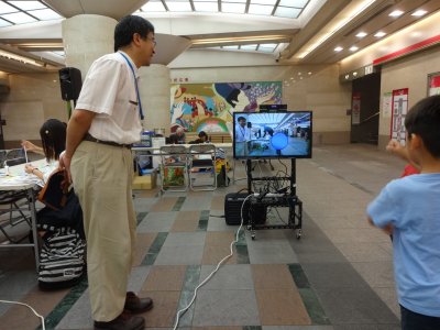WEBカメラを使って、動作をキャッチし、 画像をダイナミックに動かせる。 これも面白そうだった。 |