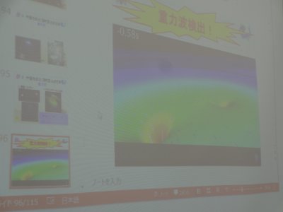 2日目の最初は、やはり基礎的な講義で、 相対論の簡単な入門講義をしたが、 今年はまずは 重力波検出 の話題から紹介した。 |