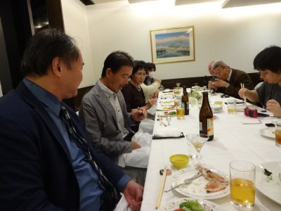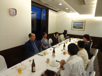 明石駅前のホテルで会食。 個室だったので、気楽に談話できた。 |