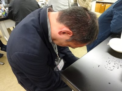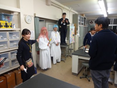懇親会の会費がえらく安いなと思ったらば、 実験室での懇親会だった;ちょっと料理とお酒が(泣)。 |
