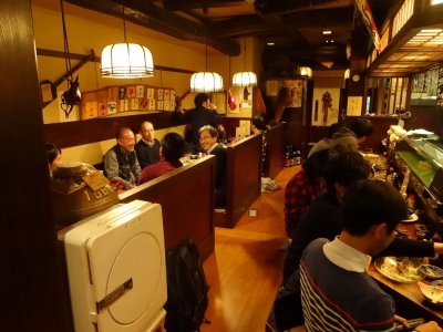 懇親会会場の五番蔵。ネットで見たところ、 なかなか美味しいと評判のお店だった。 実際、料理、よかった。 |